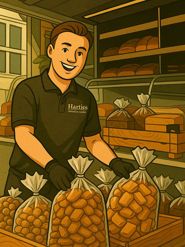 Harold is sinds kort terug in ons team en zijn komst voelt meteen vertrouwd. Met jarenlange ervaring als bakker op de markt brengt hij stabiliteit, rust en vakmanschap mee. Harold weet precies hoe het eraan toe gaat en kent alle oude trucjes uit het vak. Die kennis draagt hij met enthousiasme over aan de jongere collega’s, die veel van hem leren. Zijn betrokkenheid en passie voor het ambacht maken hem tot een waardevolle kracht binnen ons bedrijf. Harold bewijst dat ervaring goud waard is en zorgt voor een mooie brug tussen het verleden en de toekomst.